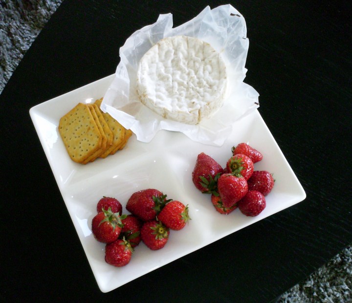 Meidän perjantaiateriamme päättyi camembertiin ja mansikoihin.
