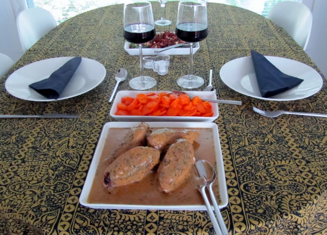 Itse valmistin tähän lisäkkeeksi salaatin, joka ei lainkaan sopinut rakuunakanan makuun. Jätän siis ohjeen odottamaan sopivampaa hetkeä. Rakuunasta en paljonkaan perusta mausteena, koska se on helposti dominoiva. Tähän soossiin rakuuna sopii niin hyvin, että muuta ei voisi ajatellakaan.