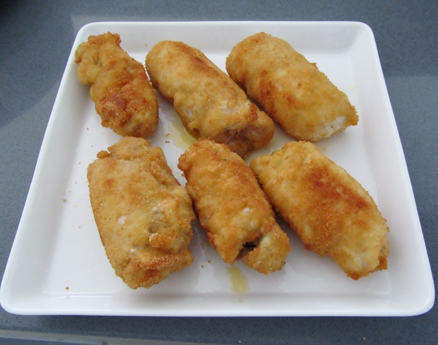 Edellisen kerran olen Kievin kanaa alias Kiovalaista kotlettia valmistanut noin kaksikymmentäviisi vuotta sitten opiskellessani kotitalousopettajaksi. Muistiin on jäänyt, että ruokalaji ei kuulu kaikkein helppotekoisimpiin, ja että siinä on ideana voitangon kätkeminen kananrintaan tai -koipeen korvaamaan poisnyppäistyä luuta.
