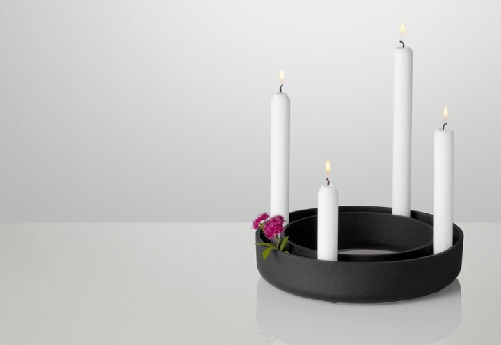 Näin joulun alusaikaan on kivaa poltella kynttilöitä. Minusta kauneimpia ovat valkoiset kruunukynttilät, koska niissä on niin puhdas, lämmin liekki. Meillä vaan ei parhaillaan ole oikein hyviä jalkoja pitkille kynttilöille. Tämä olisi yksi ehdokas. Gloria-kynttilänjalka, joka on valmistettu valuraudasta. Sitä löytyy myös valkoisena. Ideana on, että kynttilänjalkaan voi laittaa haluamansa määrän kynttilöitä ja niiden lisäksi vaikkapa kukkia tai havunoksia. Turussa näitä myy ainakin Sisustuksen Koodi (on muuten myymälä, jossa joutuu hulluuden partaalle kaikkien sisustusihanuuksien runsauden vuoksi). Pitänee laittaa harkintaan…