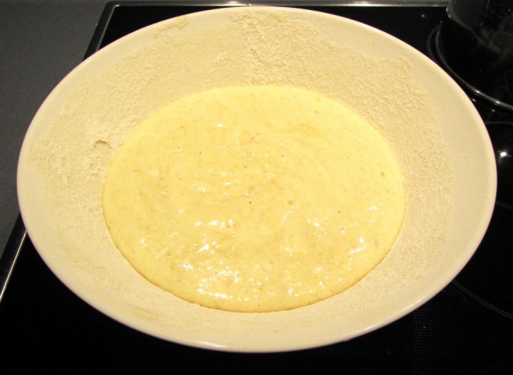 Vaahdota valkuaiset, lisää vaahtoon rippunen suolaa (kovettaa vaahtoa). Lisää noin kolmannes valkuaisvaahdosta kohokaspohjaan. Sekoita voimakkaasti. Lisää loppu valkuaisvaahto, ja sekoita nyt helläkätisemmin. Silti kohokkaaseen ei saada jäädä seikkailevia valkuaishattaroita!