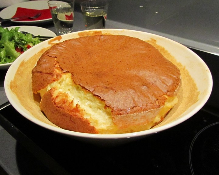 Ja voilà: Souffle au fromage! Lisäkkeeksi sopii raikas salaatti ja kyytipojaksi lasi viileää valkoviiniä. Sitten vaan James Bondin pariin…