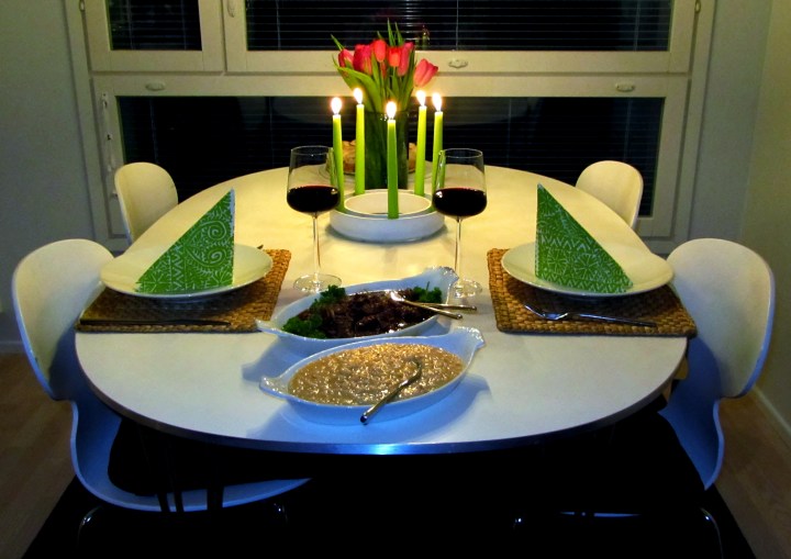 Ateria jatkui illalla, ja silloin oli vuorossa hartaasti haudutettua härän rintaa ja risottoa.