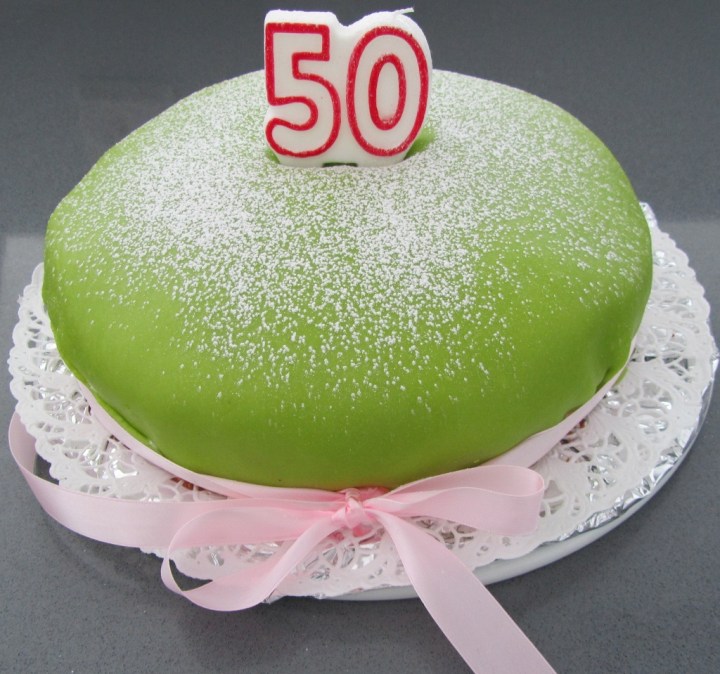 Mehu-Maijoista Rouva L. täytti tasavuosia ja me muut Maijat kävimme yllätyskakuttamassa hänet. Leipaisin taannoisen Prinsessatårtan innoittamana 50-vuotiskakun. Lisäsin nyt kerrosten väliin itsekeittämääni vadelmahilloa, ja vot se raikasti kakun makua.