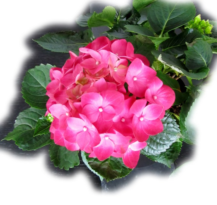 Hortensia vaihtui toissa viikolla uuteen, kun edellisestä onnistuin hävittämään värin ja sitten se kuivahti lopullisesti. Uusi on melko elinvoimainen ja pinkki.