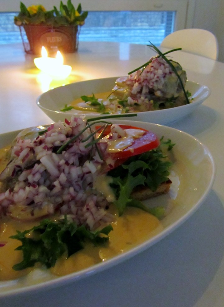 Valmistin meille eilen fredagsmys-inspiroituneena Matplatsenin ohjetta mukaellen Bookmaker Toastit bearnaise-kastikkeella. Alkuperäiseen leipään olisi kuulunut tuon kastikkeen asemesta raastettua piparjuurta ja kananmunan keltuainen, mutta blogin Victoria oli vaihtanut komponentit.