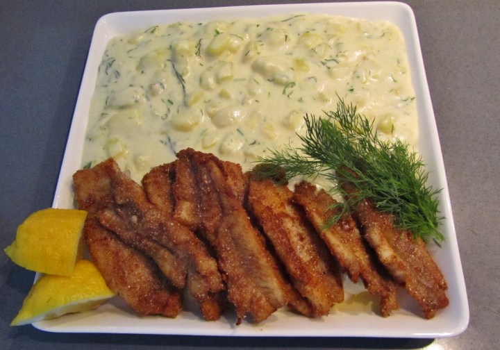 Kevät ja rannikon isot ahvensaaliit – huikeaa! Vaikka me emme Herran kanssa pääse itse kalastamaan, löytyy nyt jopa (paljon kritisoimastani) lähikaupasta pyyntituoretta ahventa ja vieläpä kohtuulliseen hintaan (n. 5 euroa/kg). Pakko oli saada rapeaksipaistettua ahvenfilettä, ja tällä kerralla ruotsalaistyyppisten perunoiden, dillstuvad potatis eli Skånen perunoiden kera.