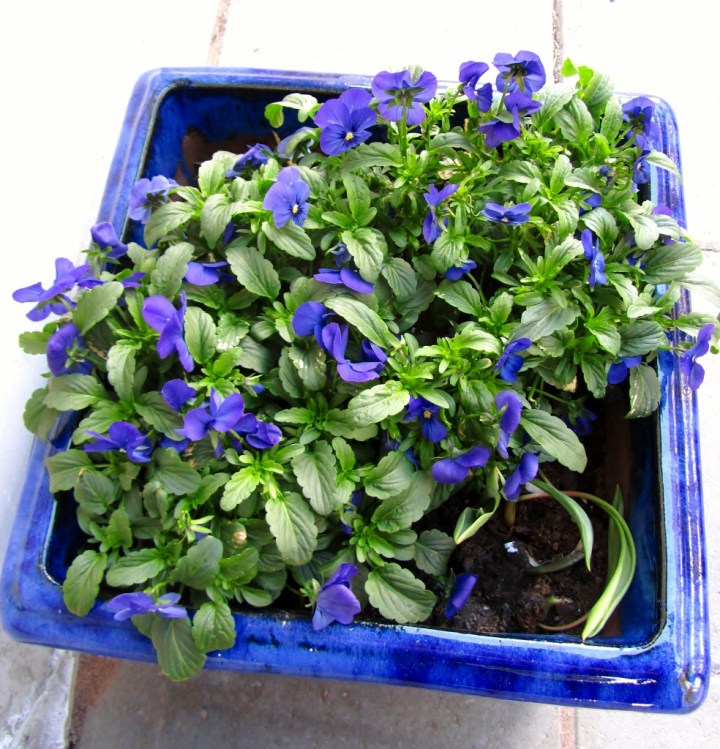 Etuoven pielestä löytyvät orvokit, jotka ihme kyllä tointuivat pääsiäisen hallaöiden tuhoista. Ne kukkivat nyt oikein kauniisti.