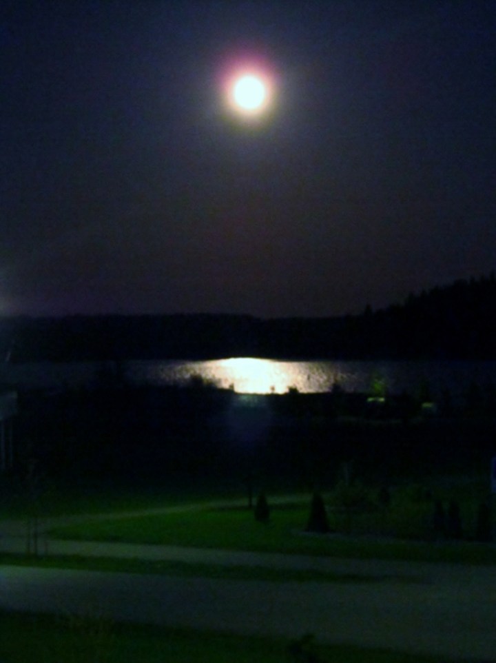 Onneksi eilinen ilta oli kokolailla pilvetön ja taivaalla leijuva superkuu pääsi näkyviin. Kuun valoteho oli itseasiassa yllättävintä. Kyllä noita suurina möllöttäviä kuita olemme aiemminkin täällä Raadelmassa nähneet, mielestämme jopa suurikokoisempina.