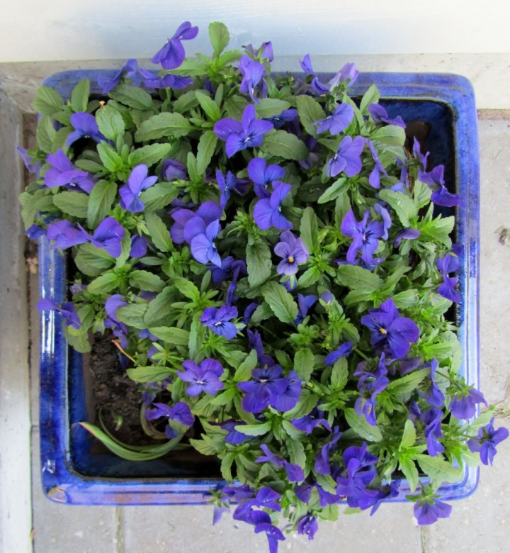 …mutta etäämmältä ihan kohtuullisen uskottavalta. Ovenpielen orvokit kukkivat edelleen ahkerasti.