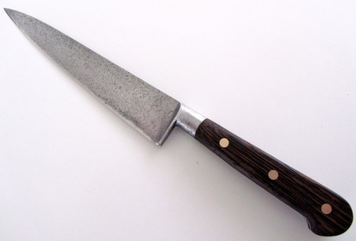 Veitselläni on ikää 26 vuotta. Se kuului Sabatierin veitsisarjaan, joka oli hankittava Cordon Bleu –kokkikoulussa. Veitset on valmistettu hiiliteräksestä, ja niiden kiistaton etu on mahdollisuus korjata teroituspuukolla leikkaamisesta aiheutuva terän kieroutuminen. Vettä nämä hiiliteräkset eivät siedä juuri lainkaan, vaan ruostuvat ja vaurioituvat.
