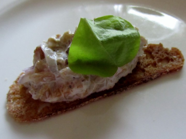 Amuse bouchena saimme nauttia ruisleipälastut, jotka oli lastattu juuri sopivan suolaisella sienisalaatilla.