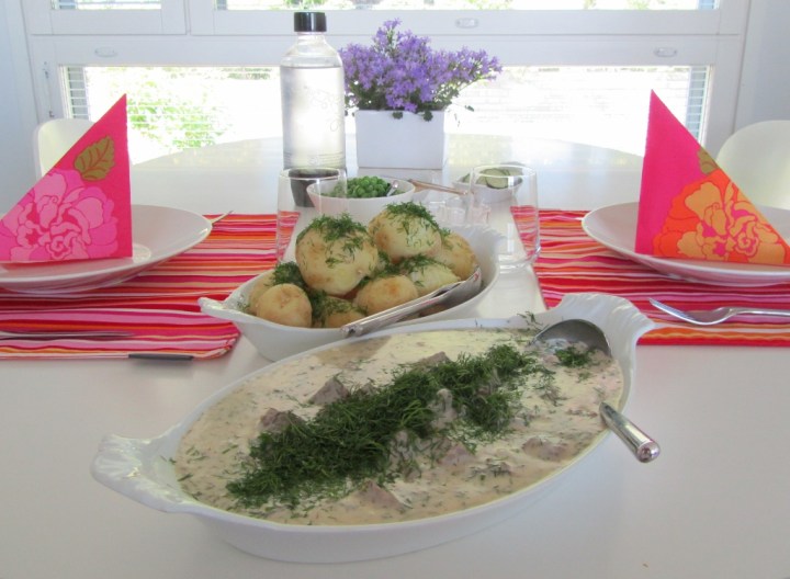 Rouvalle tämä setti maittoi paremmin kuin hyvin. Koko kesäkuu on ollut matalaliitoa paikasta ja aiheesta toiseen. Turhan kevyet salaattiateriat ovat jättäneet olon levottomaksi. Tarvitsen stressaantuneena perunaa ja kastiketta. Lapsuuden kodissani tilliliha oli kesän perusruokaa, talvella kastike vaihtui piparjuurenmakuiseksi.