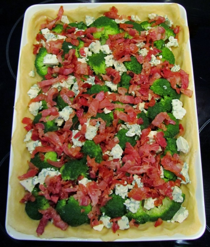 Vaan eilenpä tein ällit sisäiselle ravitsemusasiantuntijalleni ja täräytin parsakaalin sellaiseen seuraan, että terveellisyydestä ei ole tietoakaan! Vai mitä tuumaatte piirakasta (voipohja), jossa on pekonia (reilusti rasvaraitaa), sinihomejuustoa (täysrasvaista) ja kerma-kananmunaseosta parsakaalin lisäksi?