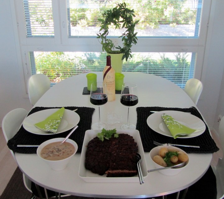 Hyvältä maistui murekkeen kumppanina suppilovahveromuhennos. Jauhoiset syysperunat täydensivät aterian. Muuten: Herra Raadelmasta on nyt päivittänyt omaan blogiinsa parikin uutta ruokaohjettaan, joista toinen on kerrassaan verraton perunasalaatti. Jaa miten se tähän liittyy? No, olemme löytäneet ylivertaisen hyviä perunoita ihan tavallisesta K-kaupasta! Ne ovat nimeltään ”Pestyjä kesäperunoita, Siikli” , ja ne myydään kilon pusseissa. Jo tuotteen nimessä on arveluttavaa, mutta ovat kyllä ihan huippulaatuisia.