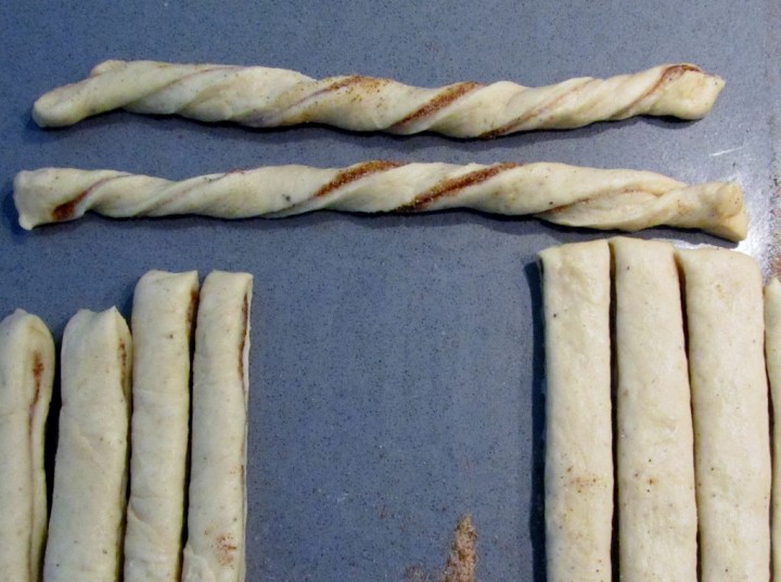 Leikkaa kaksinkertaisesta taikinalevystä reilun senttimetrin levyisiä nauhoja. Pizzaleikkuri on tässä hommassa ylivoimaisesti paras väline.