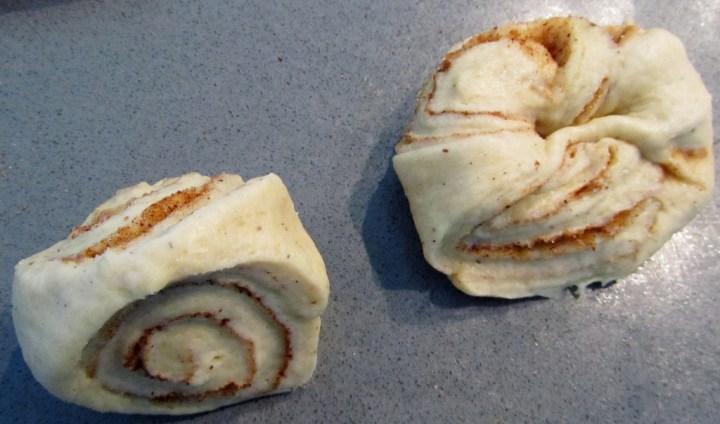 Tässä ruusupullat ovat kohoamassa. Jos taas haluat leipoa perinteisiä korvapuusteja, kääri voideltu ja mausteripoteltu pullataikina rullalle.