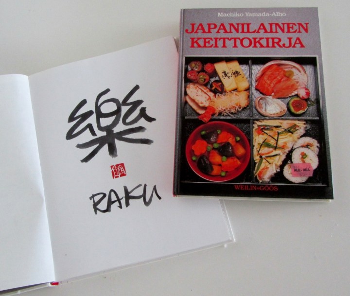 Ja omat kurssikirjatkin löytyivät kotihyllystä: Jylhän ”Raku” ja Yamada-Alhon ”Japanilainen keittokirja” täydensivät sushikoulun oppeja.