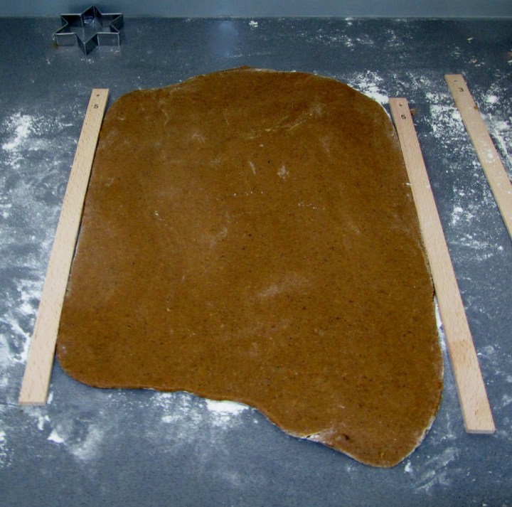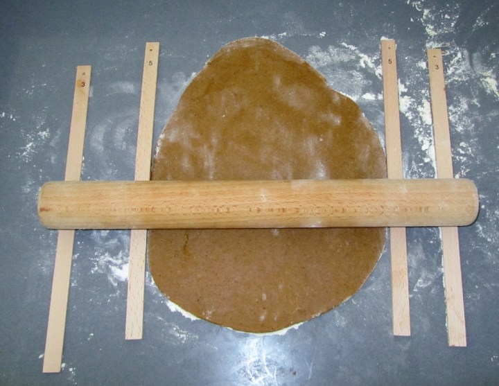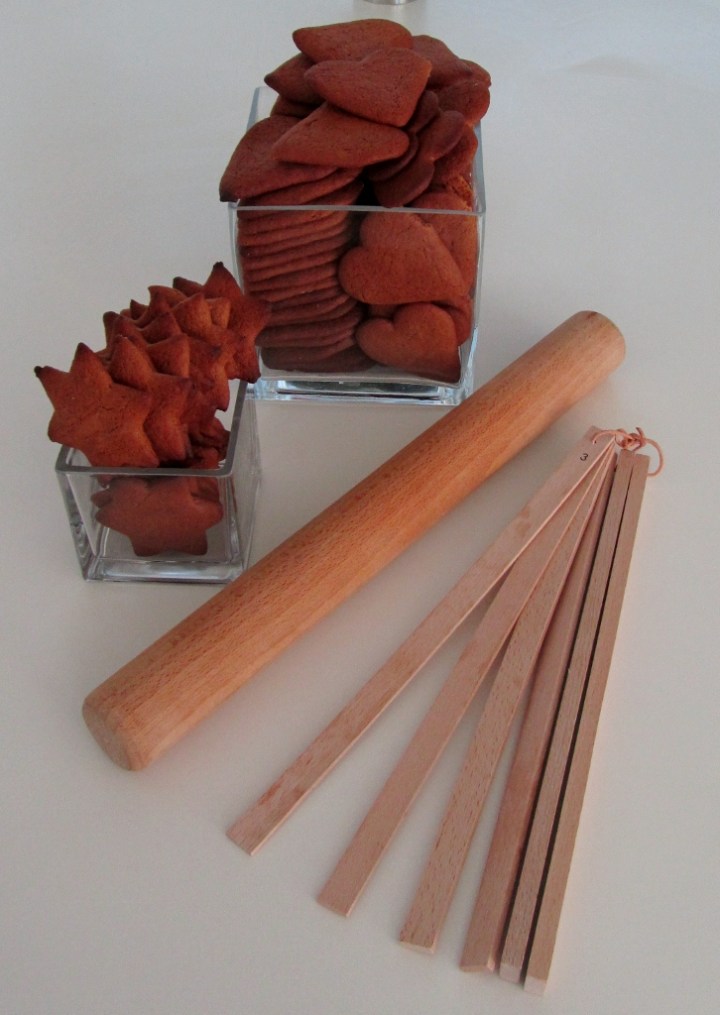 Tässäpä sitten uusi työkalu taikinan kaulimiseen: mittatikkusarja. Keloveen myymälässä Paraisilla kauppias esitteli Saksasta ja Englannista tuottamiaan leivontatarvikkeita, joista muutamia hankinkin itselleni. Tämä mittatikkusarja on yksinkertraisuudessaan nerokas: tikut asetetaan kaulittavan taikinan molemmille puolille ja sitten vain kaulitaan niin pitkään, että taikina on kauttaaltaan samanpaksuinen. Oma kaulimeni on Englannista kokkikoulun ajoilta, ja tässä hommassa parhaimmillaan. Tavallisella ”kahvakaulimella” homma hoituu yhtä hyvin.