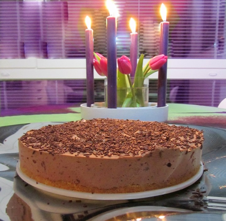 Saimme Herra R:n kanssa kerrassaan ihquja vieraita alkuviikosta. Päätin leipoa kahvipöytään Nina Lincolnin jäädytettyä suklaa-juustotorttua, jota itse pääsin pitkästä aikaa maistelemaan naisyhdistyksemme Mehu-Maijojen syystapaamisessa jokunen tovi sitten. Tumman suklaan kulutus kuulemma kasvaa kaamoksen koittaessa (tulipas hieno kkkk-ketju!), mikä on tavallaan täysin ymmärrettävää. Suklaan sisältämästä tryptofaanista muodostuu meidän nisäkkäiden aivoissa serotoniinia, joka puolestaan säätelee mielialaa.