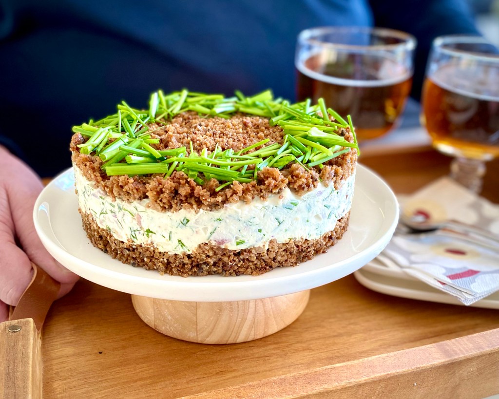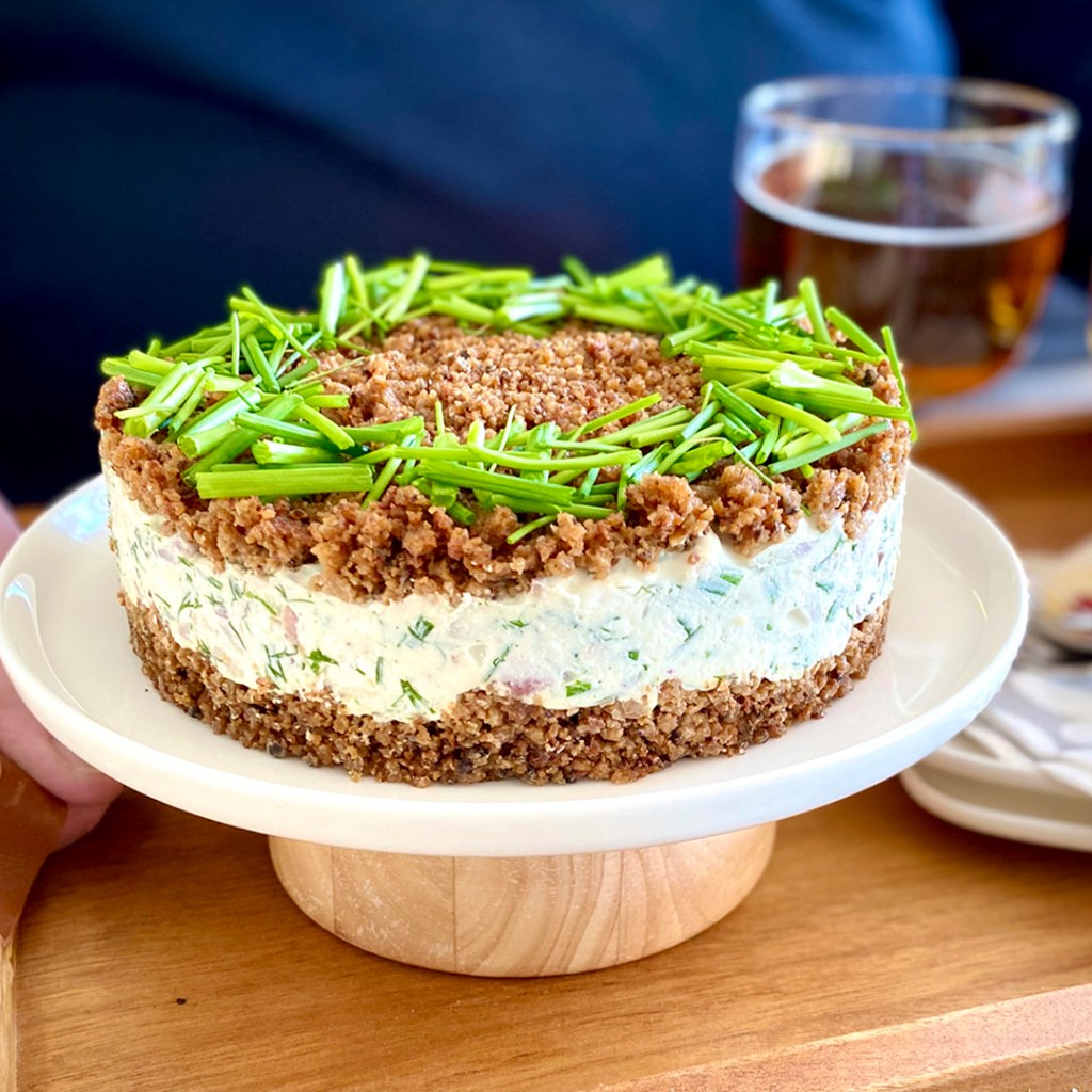 Juuri ennen tarjoilua irrota torttu vuoasta ja nosta tarjoiluastiaan. Koristele retiisiviipaleilla ja herneenversoilla tai ihan miten haluat. Nauti kylmän oluen kera.