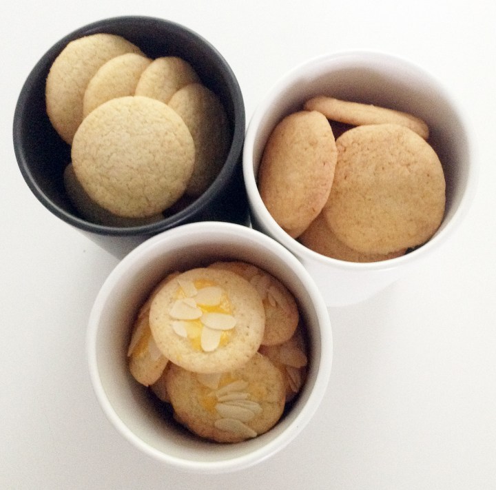 Ai niin, vielä piti mainita, että oman kokemukseni mukaan pikkuleipiin sopii parhaiten ihan tavallinen puolikarkea vehnäjauho. Leivontakarkeat (kuten esim. Sunnuntai) sopivat hiivataikinoihin, mutta voivat olla inasen liian karkeita pikkuleipiin (joissa ei juurikaan ole nestettä).