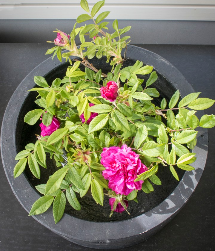 Toki kukkia löytyy myös ”omakustannushintaan” eli suoraan pihapuskasta. Kurtturuusujen tuoksu on ihan omanlaisensa.