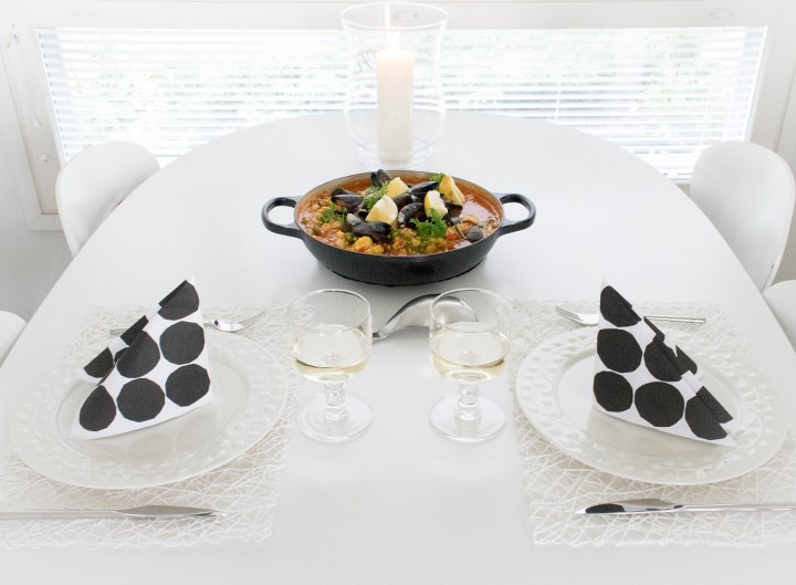 Jostakin täysin käsittämättömästä syystä paella kuuluu kesään. Nyt selityksenä ei ainakaan voi olla valensialainen ilmanala, sillä tämä on ollut kolein kesä miesmuistiin. Tai ehkäpä juuri kalsea keli on saanut kaipaamaan kunnon ruokaa? Hyvää se oli, joten eipä muuta kuin kokkailemaan!