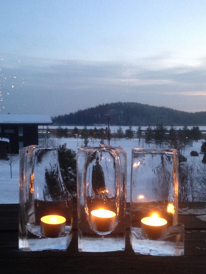 Onneksi saimme tänne Varsinais-Suomeen jouluksi valkoisen maiseman: lumi ja pikkupakkanen saapuivat kuin tilauksesta. Riensin hetimiten jäädyttämään muutaman lyhdyn. Ne säilyivät suunnilleen tapaninpäivään, mutta olivat kauniita sen minkä olivat olemassa. Nyt lämpötilat ovat plussan puolella ja ulkona on ”mummonkaatokeli”, eli eipä ole pahemmin asiaa pihamaalle.