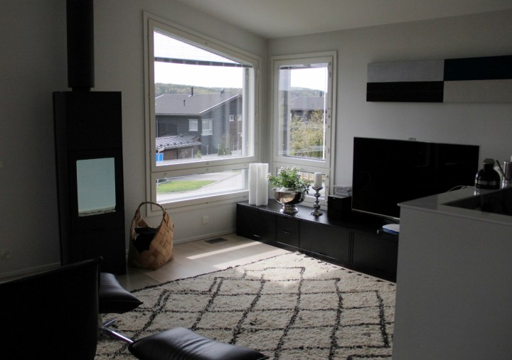 Lista jatkuu itämaisella matolla, punotulla korilla, Lundian kirjahyllyllä, kehystetyllä tekstijulisteella ja Lokki-valaisimella. Meillä niitä ei ole, mutta paimentolaistyylinen Beni Ourain -matto on olohuoneen lattialla.