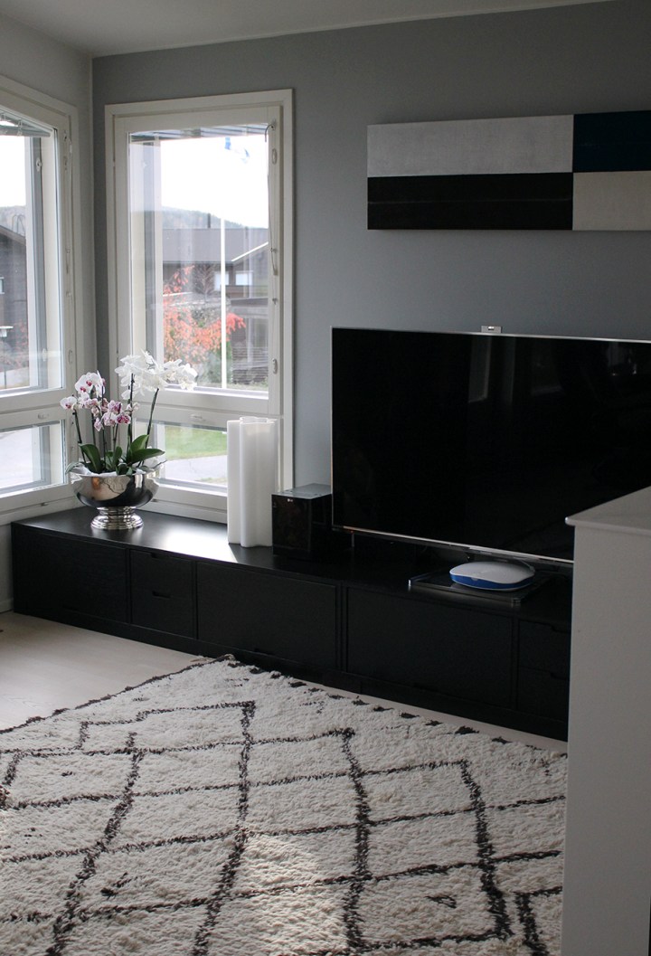 Ikean Malm-lipastoja meillä on ollut, mutta nyt en suorastaan muista mikä tämä setti oli nimeltään. Olisiko ollut Stockholm-sarjaa? Poistimme lipastoista jalat ja ne toimivat tv-tasona oikein hyvin.