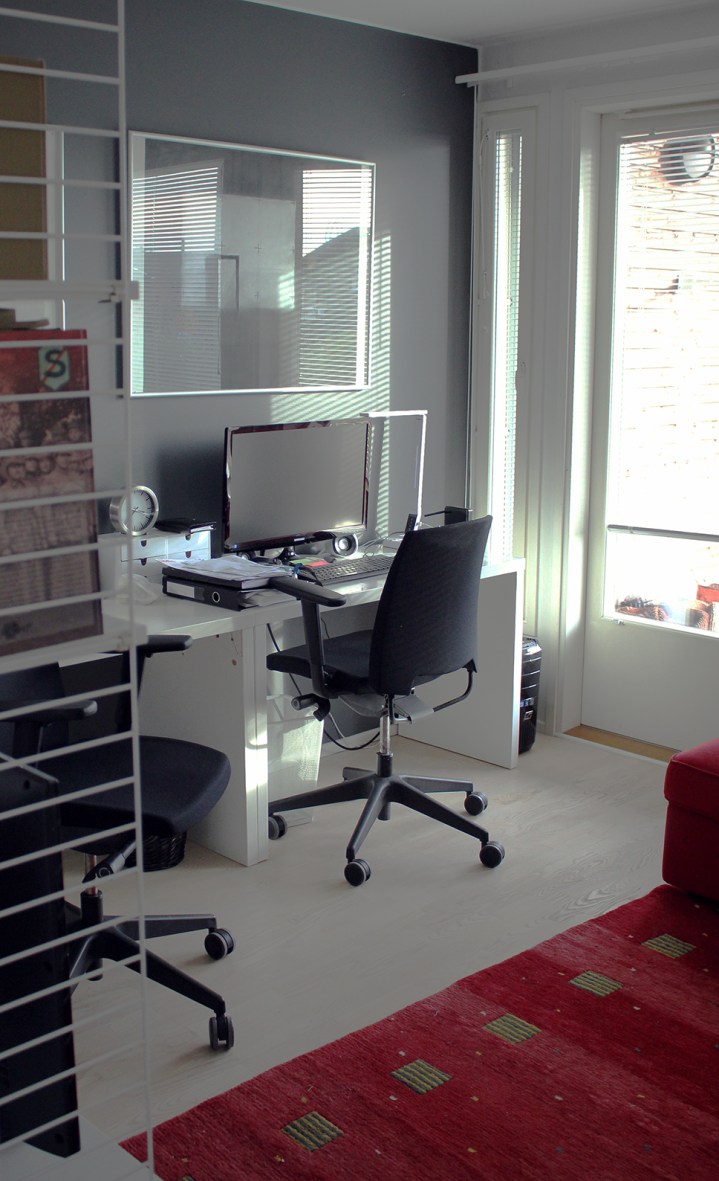 Viimeinen meiltä löytyvä listattu sisustusesine on String-hylly. Kuva on vähän omituinen, mutta ehkä tästä välittyy Stringin paras ominaisuus, ”läpinäkyvyys”. Hylly kuuluu samaan sarjaan kuin valkoiset keittiön kaapit ja harmaa sohva: ei ärsytä, voi muunnella ja toimii niin huollon kuin ominaisuuksiensa ansiosta.