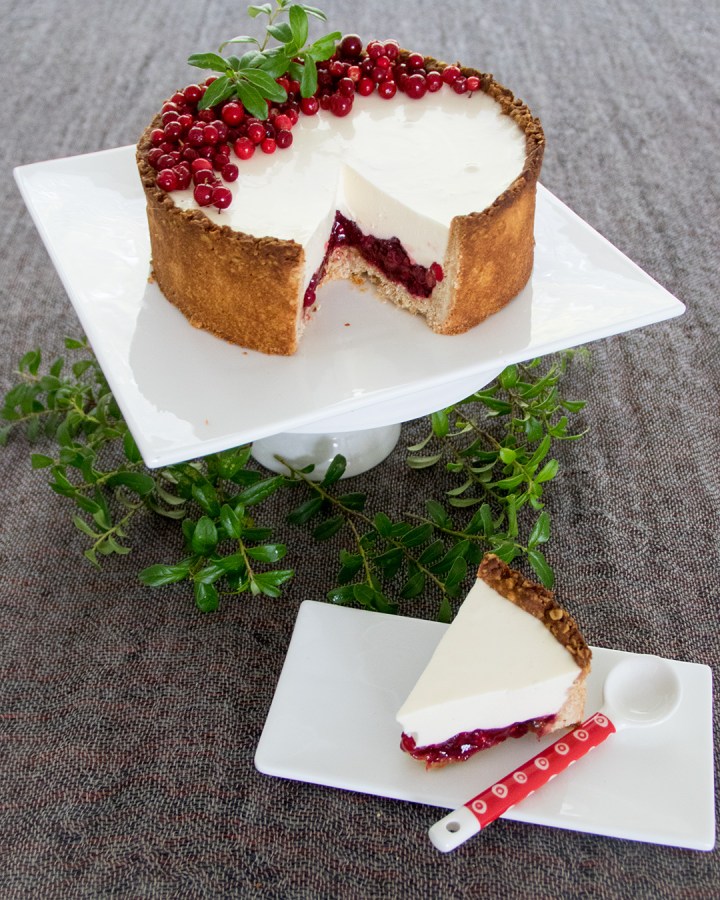Koristele leivonnainen puolukoilla ja puolukan varvuilla ennen tarjoilua.