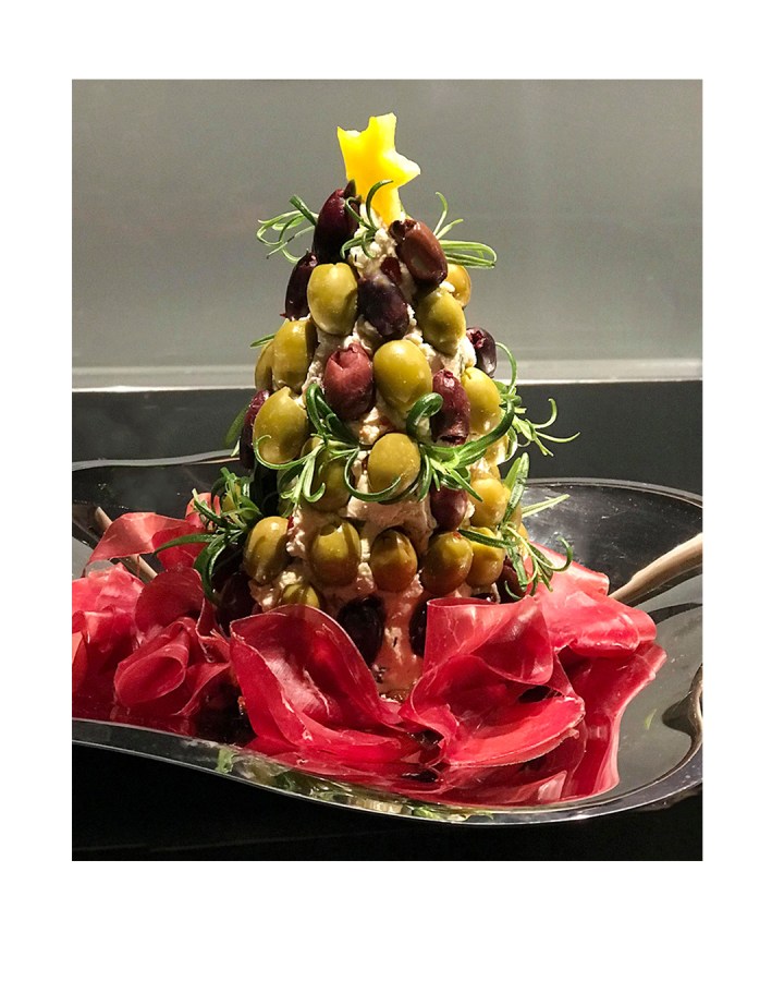 Alkupalaksi valmistin meille fetajuustoisen ”joulukuusen”, jonka pinta peittyi oliiveista eli palleroista: