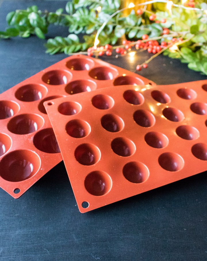 Valmistus sujuu vaivattomasti silikonisten suklaamuottien avulla. Pienempiin laitetaan suolakinuski, isompiin suklaamousse. Tällaisia muotteja löytyy mm. Confetin valikoimista. Ovat käteviä.