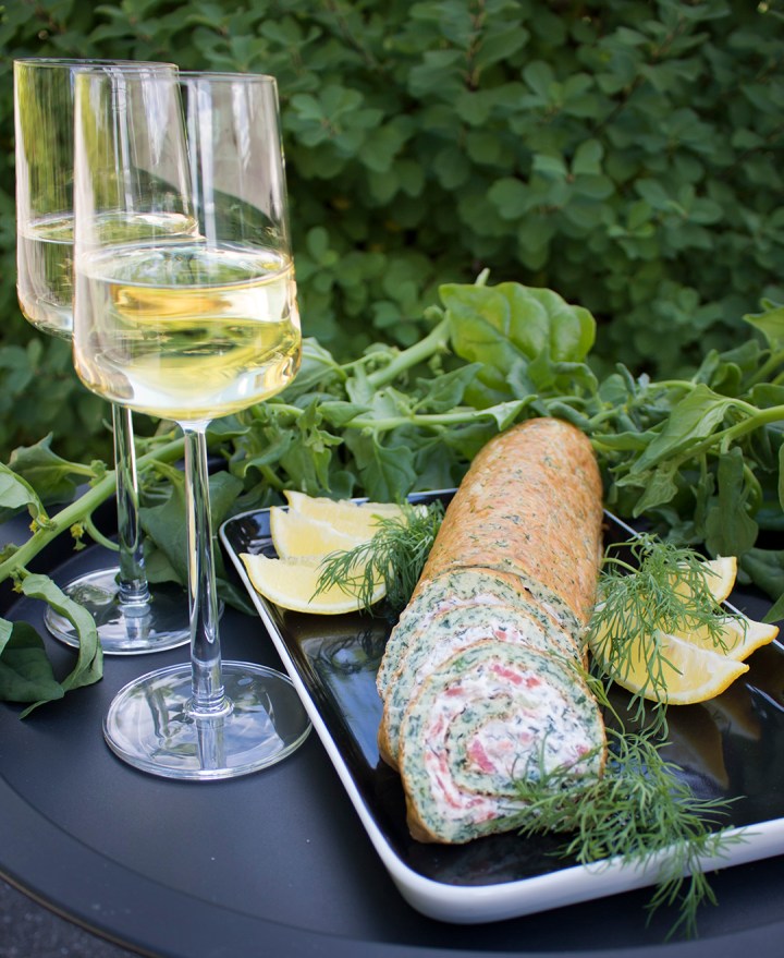 Anna vetäytyä jääkaapissa 1 – 3 tuntia tai yön yli. Koristele rulla sitruunan lohkoilla ja tillillä. Tarjoile viileän valkoviinin kera.