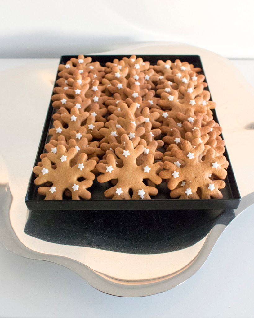 Leivoin noin puolet taikinasta hiutalemaisiksi, ja täytyy kyllä tunnustaa, että hermo oli mennä noin joka neljännen piparin kohdalla. Nuo sakarat! Pikkuleipien siirtäminen leivintasolta uunipellille oli vähän riepovaa. Toisaalta, tulihan niistä aika nättejä.