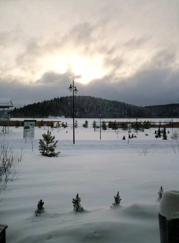 Tältä meilläpäin näytti viikonloppuna; talvenselkä alkaa taittua. Tai niin ainakin toivon. Kyllä tätä lunta ja jäätä on jo ihan riittävä annos ehditty nauttia. Sääennusteet lupasivat Föhn-tuulta, mutta tänne se kyllä saapui jäätävänä viimana. Tuuli oli ollut niin voimakasta, että etupihan kinokset olivat viime yönä saaneet roskakatteen.